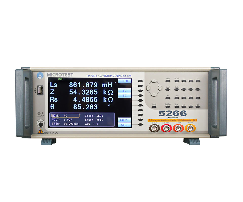 益和 5266 變壓器, 測試頻率為 10Hz-500kHz,測試點位為20點?;揪珳识?±0.1%,搭配F5620測試治具(含100mA直流偏置電流)。內建可儲存128組測試檔案。支援RS-232、Handler、LAN、USB Host等介面。適用于各種變壓器進料、檢驗、品保等檢測部門。