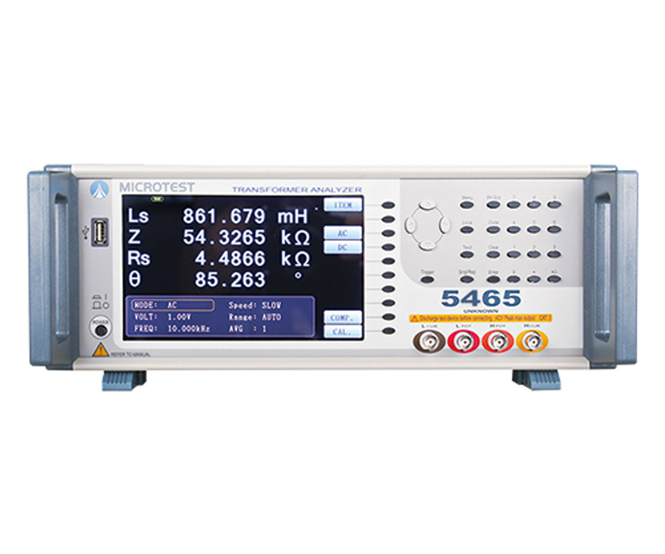 益和 5465 變壓器, 測試頻率為 10Hz-200kHz,測試點位為48 點?;揪珳识?±0.1%,搭配F5648測試治具(含100mA直流偏置電流)。內(nèi)建可儲存128組測試檔案。支援RS-232、Handler、LAN、USB Host等介面。適用于各種變壓器進料、檢驗、品保等檢測部門。