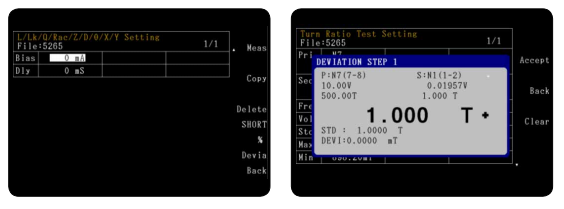量測參數(shù)項目 電感、阻抗、電容、電抗、電導、電納、導納、交流電阻、品質(zhì)因子、損耗因子、相位角、直流電阻、漏感、圈數(shù)比、平衡、短路
