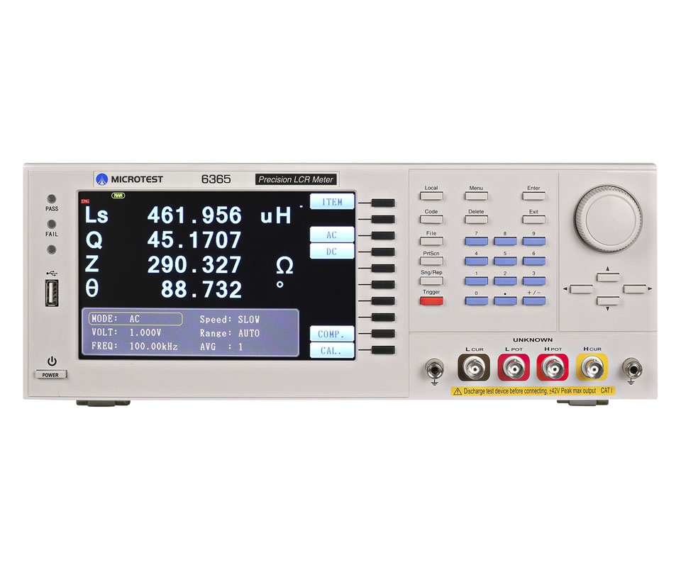 6364經(jīng)濟型 LCR 電橋具備高精確度、速度,且經(jīng)濟型多功能,測試頻率范圍從10Hz~100kHz?;揪_度±0.05%,螢幕畫面可以同時顯示四個參數(shù)。具多步列表功能,最多可以設定8組。低頻率6365A(0.1Hz~200kHz)可量測容量大的鋁電解電容。支援USB Host、RS-232、GPIB、Handler、LAN等介面。可選購電腦連線軟體進行圖形繪圖分析。適用于生產(chǎn)制造、品?;蜻M料檢驗或自動化檢測部門。